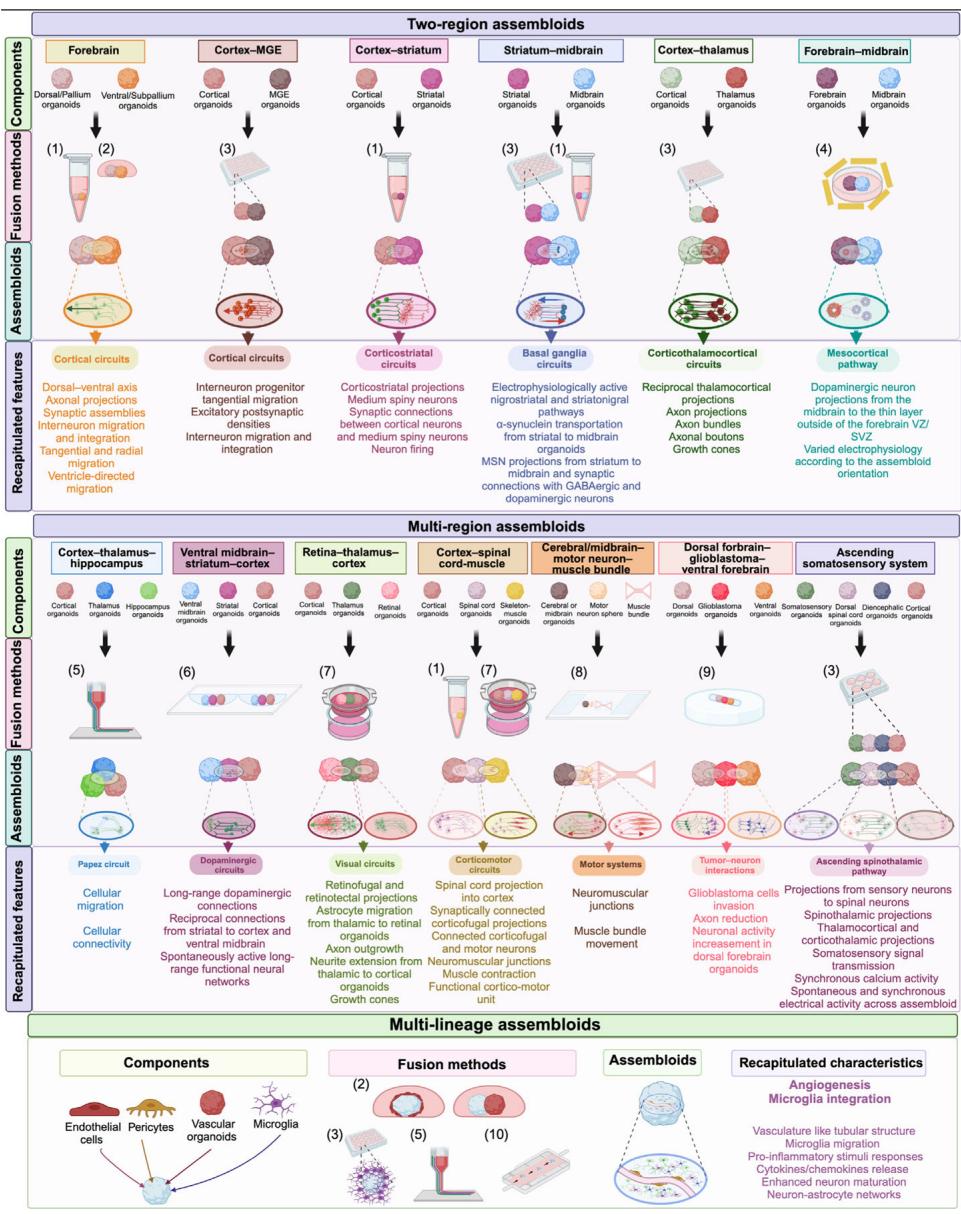 - 类组装体(Assembloids):各多区域组合形成的融合类器官结构
